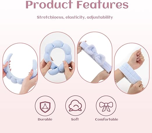 - 【PRACTICAL SPA HEADBANDS FOR WOMEN】The face washing headband is not only stylish but also practical. It can be used as a skin care headband for women to keep your hair in place and prevent it from falling onto your face while you're applying makeup. can also be used as a facial headband or makeup Headband for women, easily fixing your hair when removing makeup, washing your face, applying a facial mask, or relaxing at SPA Headband also perfect for use as a yoga headband, it keeps your hair neat.