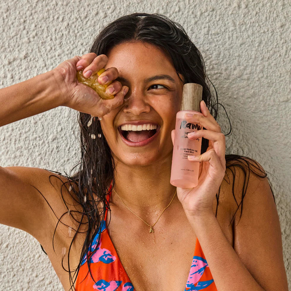 Skin having a lunchtime slump? Wake up your complexion with a quick spritz of Hydrating Face Mist! Its ultra-fine mist formula is supercharged with brightening Acai Fruit Oil, vitamin-rich Kakadu Plum, firming Apricot Kernel Oil and WildBerry Harvest™ - the ultimate mega hydrator. Get super dewy, radiant skin in an instant. The multi-use spritz also works as a makeup setting spray, so you can simply tone, set and forget!